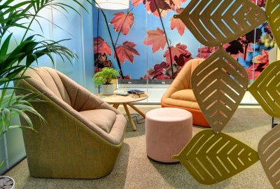 Within the office, Flexiform designed several areas including a small office space with traditional desks, a conference room, a lab area/ breakout space and a reception area. The Conference Room was the most unique space, with a bespoke horseshoe Additions 2 poseur height table complete with matching black frame Miss stools. A credenza offers under-monitor IT storage whilst the rest of the room had breakout sofas, a mobile planter divider and lounge chairs with laptop tables. These pockets of agile workspaces offer informal meeting spaces to smaller groups of staff, making the room more versatile and flexible. United Utilities also plan to use the Conference Room as a training space, with the furniture offering great 1-2-1, small group or larger group learning.