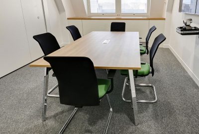 The large dining area consists of our Wilson Ply table with power and data and full cable management, our poseur height Additions 2 table and Additions Pedestal Tables. These are surrounded by a collection of stools and chairs, providing different seating options. The meeting rooms house our Additions 2 meeting tables with built-in power and data and cable management. Surrounding these are a range of ergonomic Workday meeting chairs ensuring comfort.