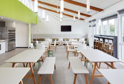 In addition to the canteen and breakout furniture, Flexiform installed a range of Additions 2 tables, flip-top tables and Cyla stackable cantilever frame meeting chairs in staff meeting rooms, providing a flexible and modular meeting space.