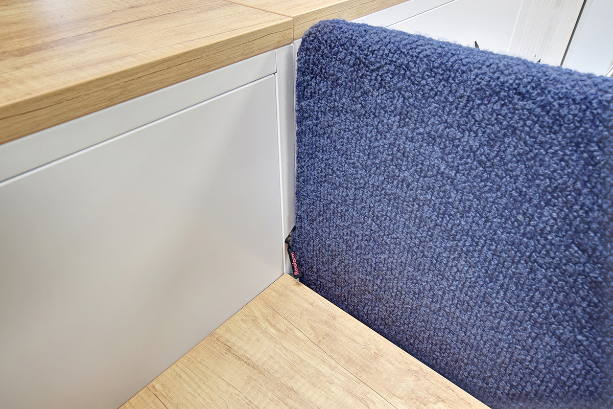 Laxtons are manufacturers of yarn for contract fabric supplier Bute. This manufacturing heritage and tactile yarn features in the interior design with our Ferro clear coat lacquer industrial style storage, managerial desking, breakout areas and boardroom furniture, and their own yarn on the task seating and desk mounted screens. Working with our in-house Design and Engineering departments and Space Planning department, we created a layout and visuals with bespoke boardroom tables and Nebraska Oak laminate cladding our Freestor Tambour Storage. Many of the staff members at Laxtons have expressed how much they enjoy the Tambour storage. The ease and accessibility of the storage units are particularly popular with staff, allowing work to be tidied away at the end of the day. Placed at different angles, in order to improve access, the Flexiform Tambours have made a real difference in this office.