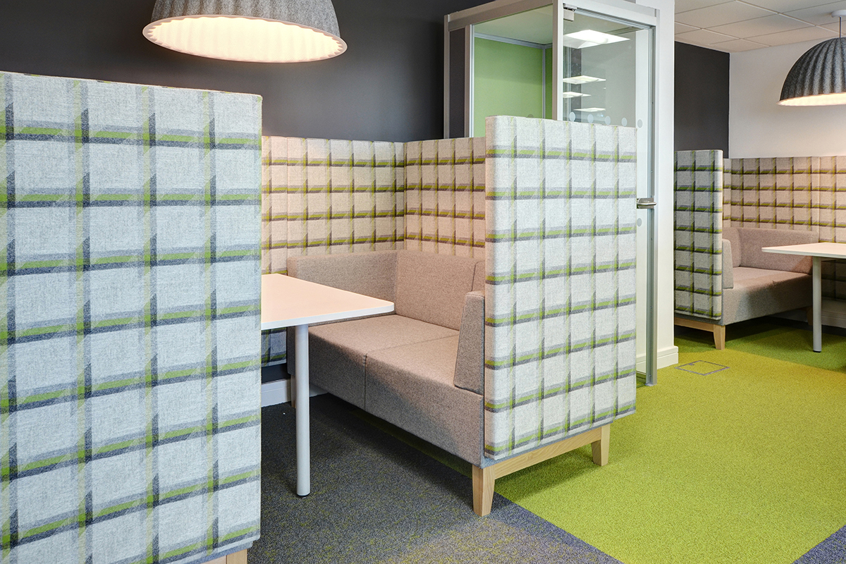 In the collaborative workspaces, the Media Booths, with high backs and a central table, give staff a place to collaborate for semi-private informal meetings or a place to breakout and relax. The additional Quiet Work Pods provide a space to focus and concentrate and is perfect for individual working. In this area you will also find a phone booth, providing a private setting for employees. It improves the efficiency as it reduces distractions whilst the other staff work.