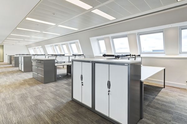 Freestor Tambour Storage units are Flexiform’s most popular office storage cabinets. The Freestor Tambour is designed to replace the traditional 4-drawer filing cabinets, offering more efficient storage space and featuring space-saving shutters which curl up within the unit, minimising operational space.