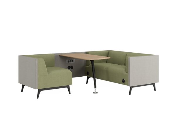 Tryst booths come with matching low back and high back office sofas, offering continuity across reception, breakout, collaborative and focus spaces.