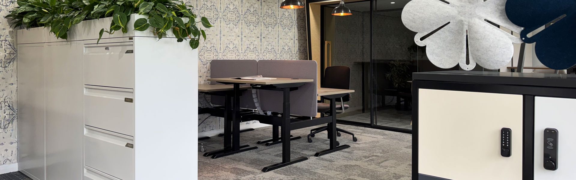 A-Up Height Adjustable Desk & Aero Screens in Scotland Showroom