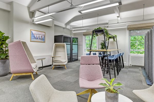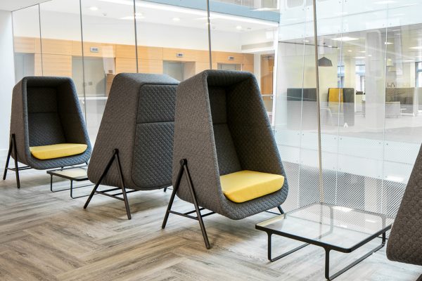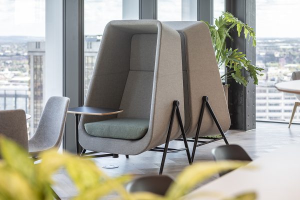 Muse Work Booths, Valido Lounge Chairs, Larke Work Table & Miss High Chairs
