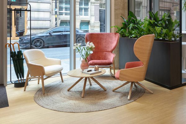 Hygge Lounge Chair, Omni Coffee Table & Tryst Sofa at Swizzels Install