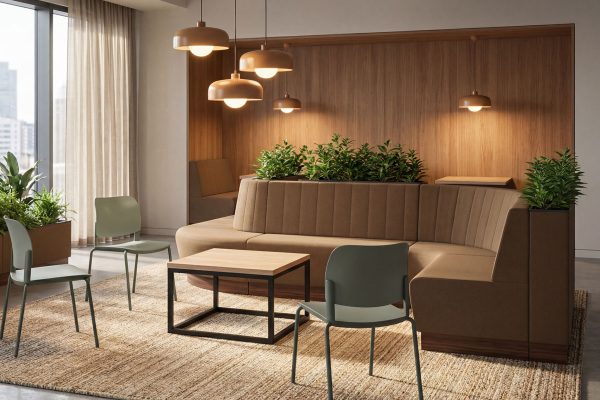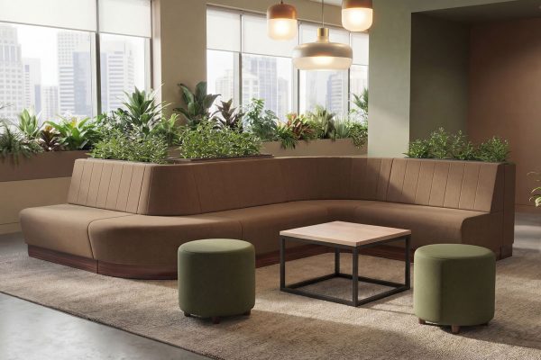 Velo Banquette Seating: Freestanding Planter with Upholstered Base
