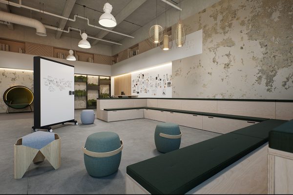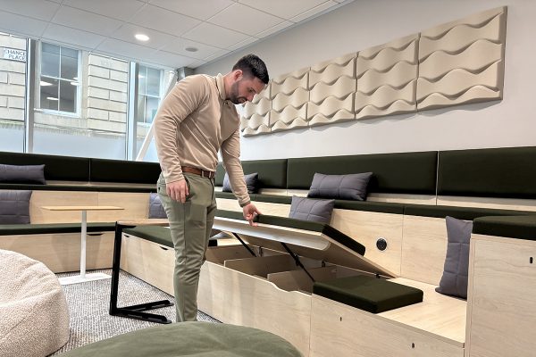 Hygge Lounge Chair, Omni Coffee Table & Tryst Sofa at Swizzels Staff Canteen